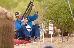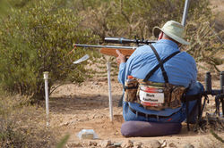 Friday started early. We started the day with”Ranger B” from the Maricopa County Parks Dept to who gave an outstanding hour long interpretive walk along the FT range trail discussing the Sonoran Desert. At 1030 am we started the first safety briefing. We started the pistol match at 11 am. The course was set up on the rifle course, however exchanging the targets to meet the requirements for pistol FT. It was designated the green course. We had one forced standing / freehand lane, which was 8 shots. There was one target that kept getting complaints. We checked it with the target checker and it passed. However upon closer inspection we discovered that it would occasionally lock up in the falling process and affecting the target similar to what hitting the faceplate would do. So, we decided to remove that target after the days shoot. So lesson learned, that you can’t solely rely on the tester. Then we had another target that turned out to be less than 10 yards. We used two rangefinders, which said ten, but after measuring with a tape, it was 9y 18”. So we pulled that too. The pistol match took a bit longer than expected. The Pistol Match Troyer was 32.5.