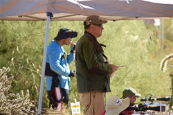 Promptly afterward, we introduced a Native American (father / son team) storyteller Ken, and the award winning national champion hoop dancer, Talon. They are the world famous dance group "Yellow Bird", from the San Carlos Apache Tribe. They performed for the group, telling the native history of the saguaro and coyote in the area, and performed a traditional hoop dance for about a half hour to the amazement of all. Standing ovation followed.